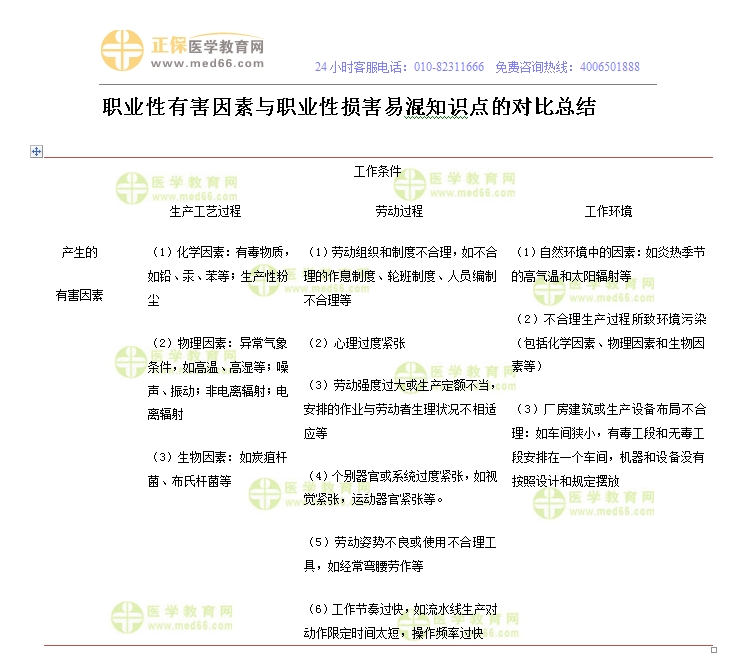 “职业性有害因素与职业性损害易混知识点的对比总结”由医学教育网编辑整理搜集,更多考试信息敬请关注医学教育网。