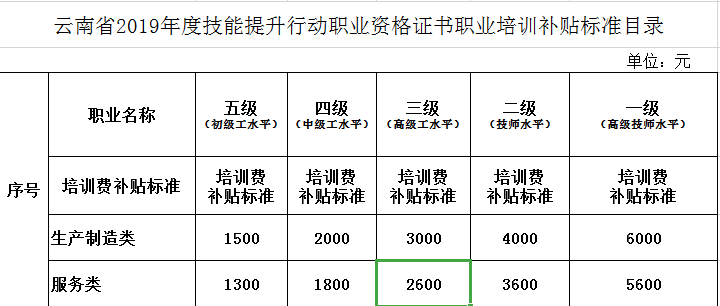 根据《云南省人民政府办公厅关于印发云南省职业技能提升行动实施方案(2019—2021年)的通知》(云政办发〔2019〕69号)规定,经制定了《云南省2019年度职业技能培训、创业培训补贴标准目录》(以下简称《目录》),其中健康管理师属于可享受补贴的服务类行业之一,三级健康管理师可领取补贴2600元!