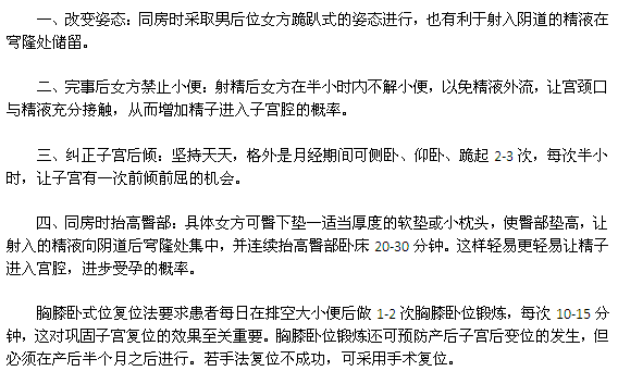 子宫后位如何提高受孕率?对于轻微的子宫后位,只需要改变一些同房的姿势,就可提高受孕率。但是,对于子宫后位严重的患者,将采用手术方法进行治疗,才能成功受孕。手术治疗完成之后,一般不建议患者立刻受孕,最好等子宫位置稳定了,再进行受孕。以下是轻微子宫后位的受孕方法,一起看看吧。