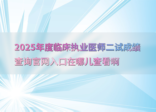 2025年临床执业医师一年两试成绩预计在11月末至12月初公布,参考近年数据(如2024年为11月30日),建议考生提前准备准考证和证件信息,以便及时查询。