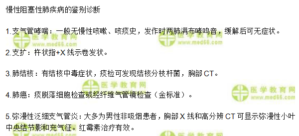 关于临床执业医师《呼吸系统》:慢性阻塞性肺疾病的鉴别诊断,相关考点,相信备考2020年临床执业医师考试的考生都在关注,为方便大家学习,在此医学教育网小编为大家整理如下内容:
