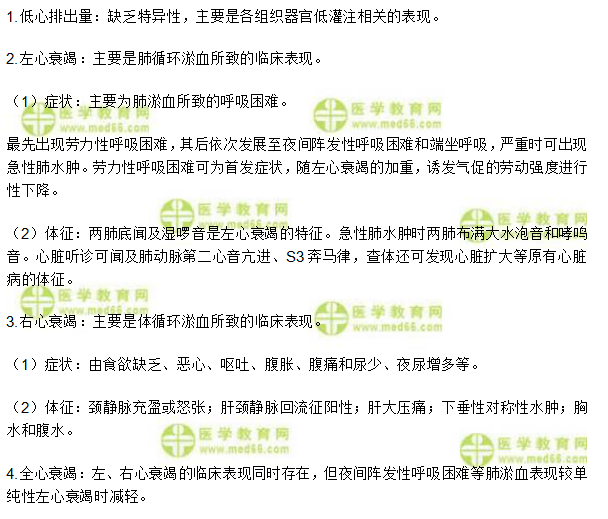 关于临床执业《心血管系统》考点:“慢性心力衰竭的临床表现”相关内容,相信参加2020年临床执业医师考试的考生都在关注,为方便大家备考,在此医学教育网小编为大家整理如下内容: