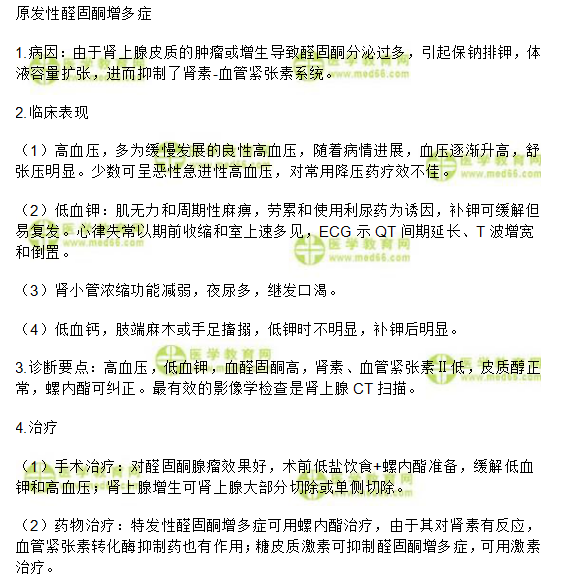 关于“临床执业医师《代谢、内分泌系统》考点:原发性醛固酮增多症”相关内容,相信参加临床执业医师考试的考生都在关注, 为方便大家学习,在此医学教育网小编为大家整理如下内容: