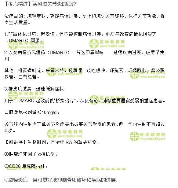 关于临床助理医师《风湿免疫系统》:类风湿关节炎的治疗考点,相信备考2020年临床执业助理医师考试的考生都在关注,为方便大家学习,在此医学教育网小编为大家整理如下内容: