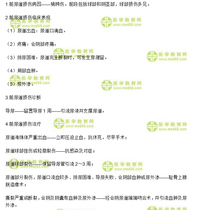 关于“临床助理《泌尿系统》考点:前尿道损伤”相关内容,相信报考临床执业助理医师考试的考生都在学习,为提高大家备考效率,在此医学教育网小编为大家整理如下内容: