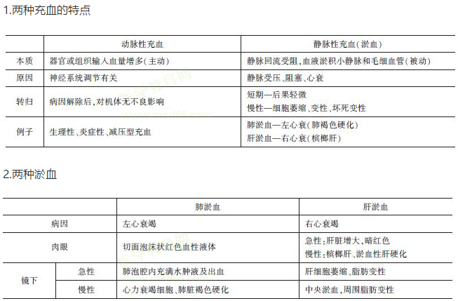 充血和淤血特点—临床执业助理医师医师病理学考点