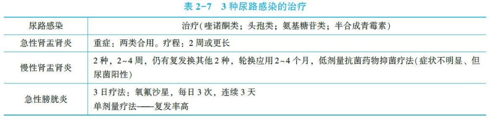 2.7日疗法 妊娠妇女、老年患者、糖尿病患者、机体免疫力低下及男性患者。多饮水,口服碳酸氢钠片碱化尿液,减少对尿路的刺激。