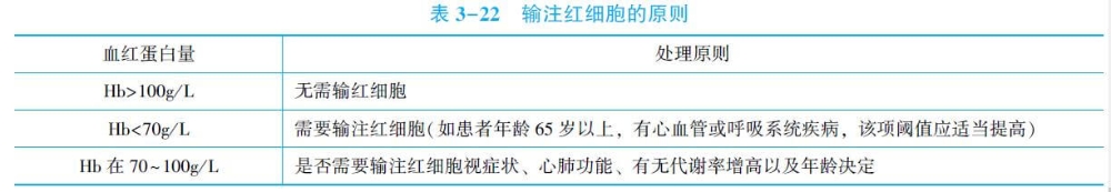 (2)根据Hb浓度及患者病情决定红细胞输血需求