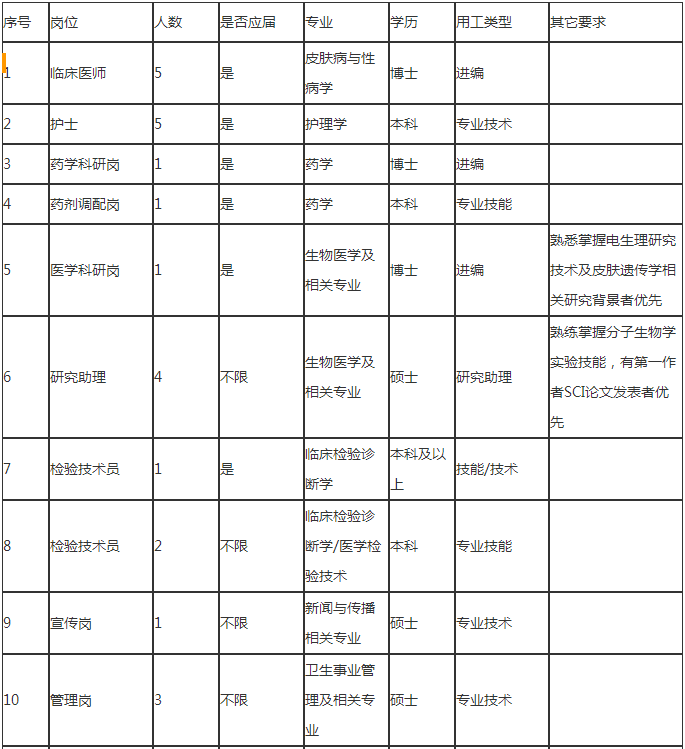 以上就是小编为大家整理的【南京】中国医学科学院皮肤病医院招聘工作人员27名,请大家多多关注医学教育网,我们会随时更新更多更好的关于医学知识、医疗招聘及考试辅导等相关内容,敬请期待!