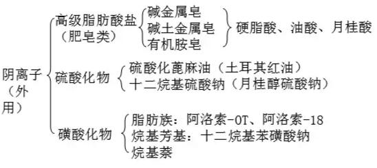 对于前面的总论部分,可以把重要的内容以表格或者图表的形式进行重点总结。比如,对于阴离子型表面活性的种类可以总结如下: