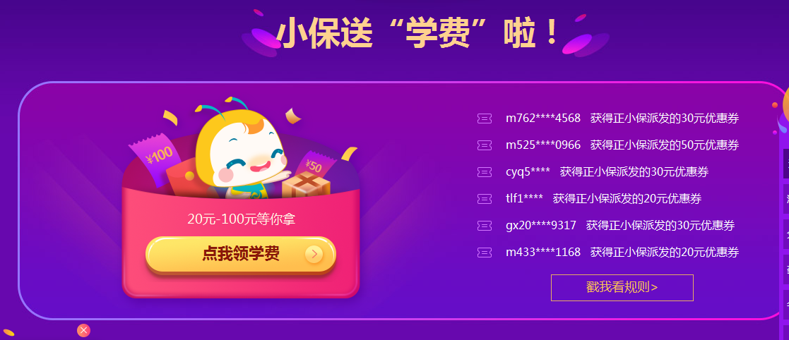 (2)点击“点我领学费”:用户登录,如果没有账号,可以点击注册!