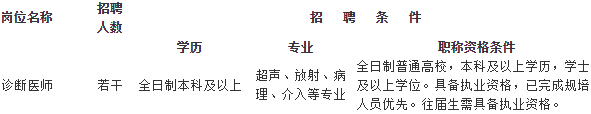 以上就是小编为大家整理的湖北黄石市中心医院招聘诊断医师10人,请大家多多关注医学教育网,我们会随时更新更多更好的关于医学知识、医疗招聘及考试辅导等相关内容,敬请期待!