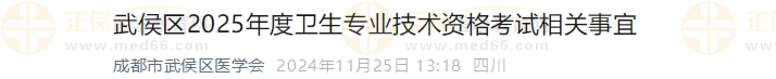 成都武侯区2025年度卫生专业技术资格考试相关事宜公布啦!医学教育网整理具体内容如下:
