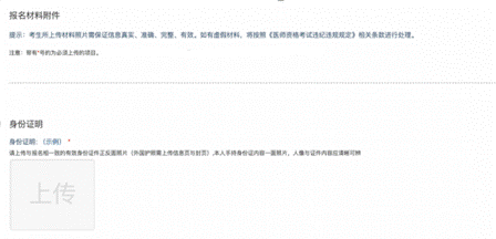 注意:页面中显示的内容,是医师资格考试所有可能需要的材料列表,考生根据自己的个人情况和考区通知要求,上传必需的报名材料图片。