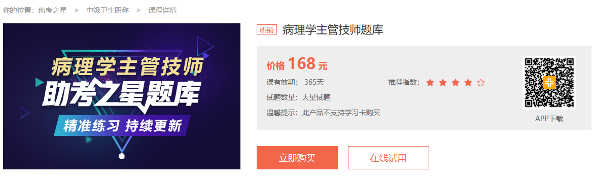 下载地址:病理学主管技师助考之星题库下载入口>>