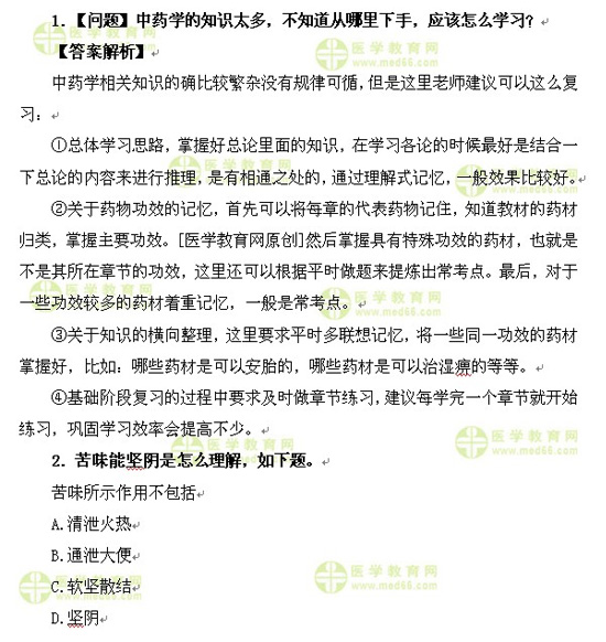 医学教育网初级中药师:《答疑周刊》2017年第1期: