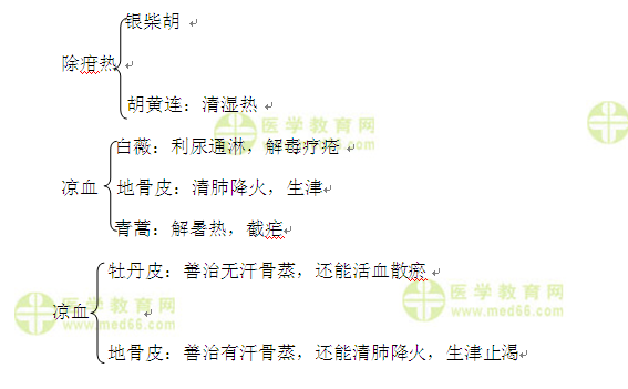 【解析】牡丹皮善于清透阴分伏热,为治无汗骨蒸之要药。【医学教育网原创】