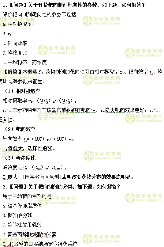 1.【问题】关于评价靶向制剂靶向性的参数,如下题,如何解答?