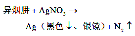 异烟肼的酰肼基具有还原性,与硝酸银反应,生成气泡与黑色浑浊,并在试管壁上生成银镜。