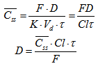 下式中,K为消除速率常数,Vd为表观分布容积,Cl为清除率,F为生物利用度,D为给药剂量,τ给药间隔时间。