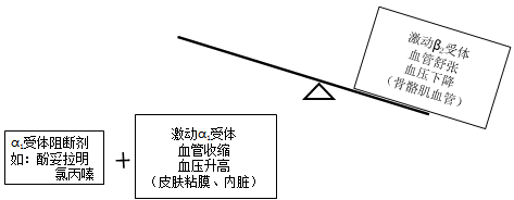②肾上腺素与α1受体阻断药同时存在时对血管的作用:
