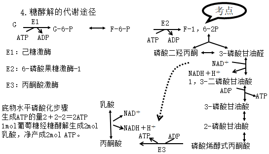 2.生理意义:①迅速提供能量,如骨骼肌在剧烈运动时的相对缺氧;②为红细胞供能;③生成乳酸还可以被利用。