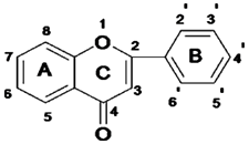 两个苯环(A与B环)通过三个碳原子相互连接而成的一系列化合物,其基本碳架为C6-C3-C6。