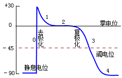 3期 | 快速复极化末期 | 0mV- -90mV | 主要K+外流 |