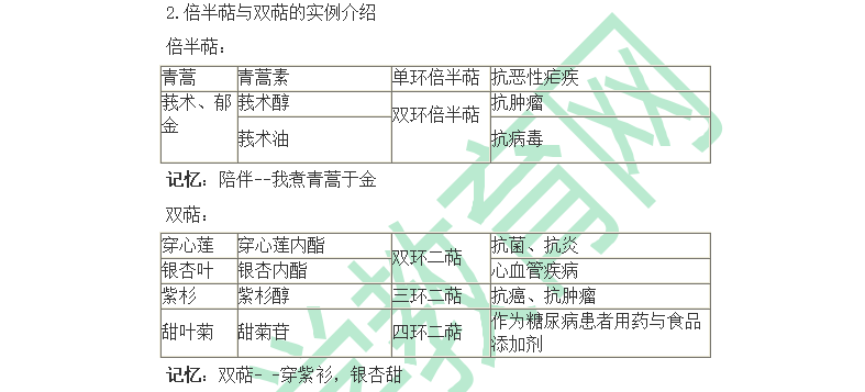 萜类与挥发油的考查点不多,集中在结构特点上,注意重点复习。