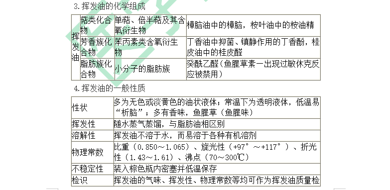 2.【答案及解析】A。挥发油的沸点一般在70~300℃之间。