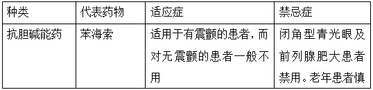 2.【答案及解析】C。苯海索适用于有震颤的患者,而对无震颤的患者一般不用,尤其是老年患者慎用,前列腺肥大的患者也是禁用的。