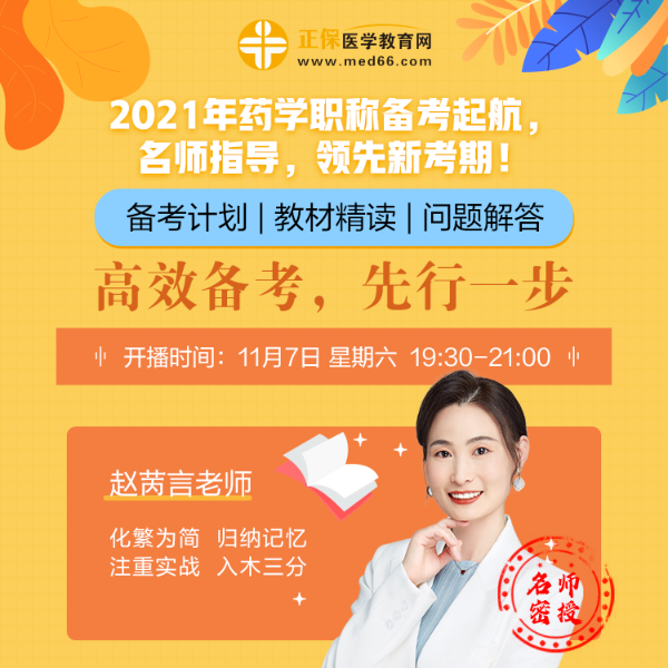 直播主题:2021年药学职称备考起航,老师指导,领先新考期!