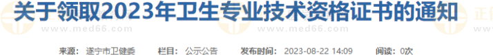 遂宁市卫生健康委员会发布关于领取2023年卫生专业技术资格证书的通知,医学教育网整理具体内容如下: