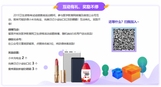 定制小米充电宝、时下超火小金钻口红、夏日伴侣防晒霜,心动不心动?只要参与医学教育网微博及微信公众号互动,这些心动礼品就有可能送到你手里!心动就快来参与互动吧!