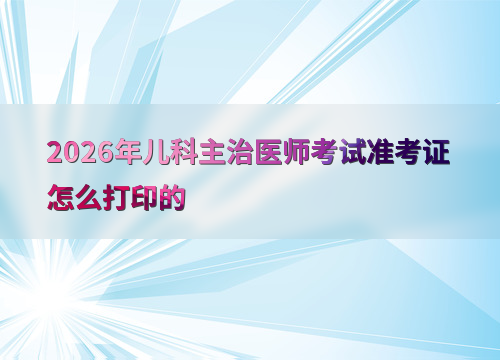 2026年儿科主治医师准考证打印时间为4月1日至26日,考生需登录考生管理平台完成下载。