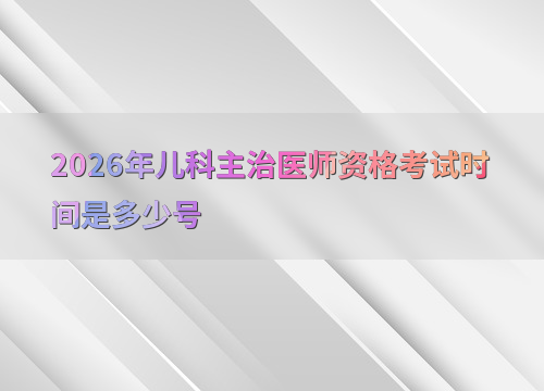 2026年儿科主治医师资格考试定于4月18日举行,全天连续进行四个科目考试,无休息时间。