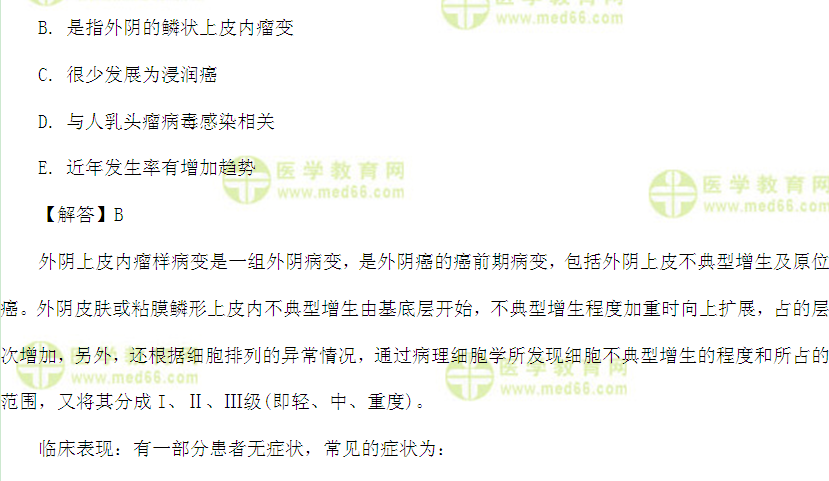 一、【问题】属于外阴上皮内瘤变特点的项目,错误的是?