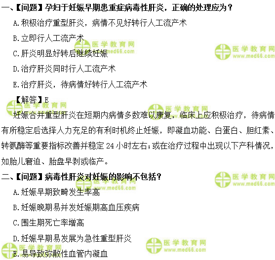 一、【问题】孕妇于妊娠早期患重症病毒性肝炎,正确的处理应为?