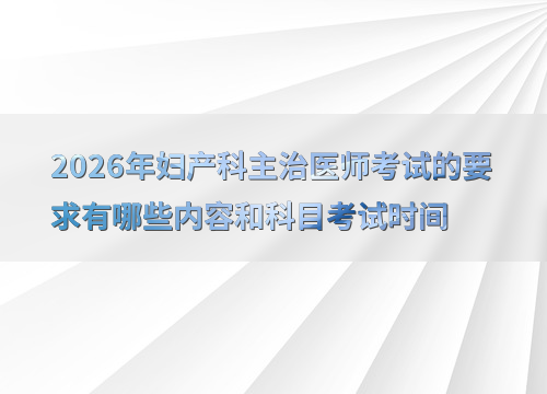 2026年妇产科主治医师考试的要求有哪些内容和科目考试时间