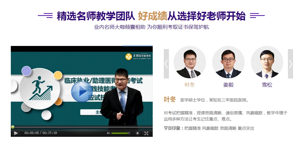 针对福建省福州市/泉州市/漳州市/南平市/龙岩市/宁德市/厦门市/莆田市及三明市各地区备考2019年医师资格实践技能考试的考生,医学教育网强势推出福建省2019年医师实践技能特色无忧班,课程分为四大阶段:包含强化冲刺、应试技巧、实战模考、直播提高,层层备考式设计。专业专家授课,根据最新“医师实践技能”大纲要求,全面、细致、深入地讲解考试所涉及的各个知识点。真人操作演示,帮助考生快速、全面地理解和掌握考试重点、难点与考点。电脑在线观看课件,可不限时间、次数。支持课程、讲义等内容下载到计算机学习,也可下载到智能手机/平板电脑学习,直至当期笔试考试结束后1周关闭。
