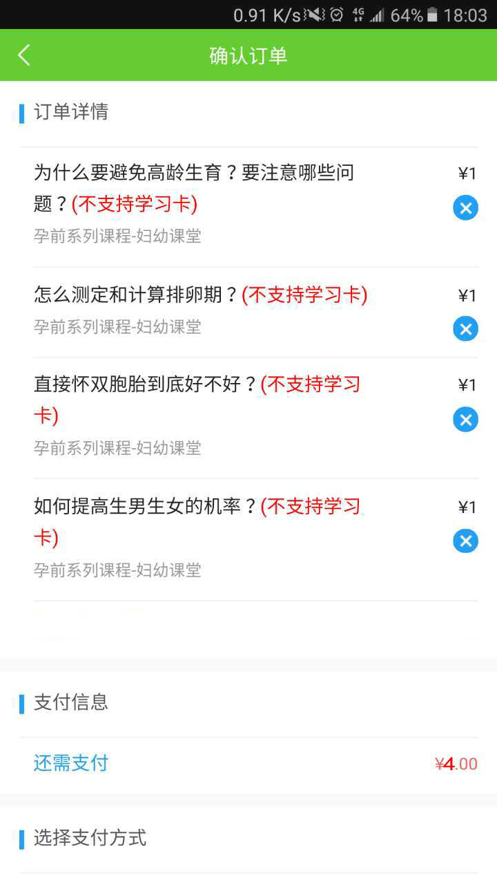 核对购买的课程是否正确,课程内容及时数量确认无误后,点击右下角的“确认支付”按钮,即可进入订单信息核对页面了。