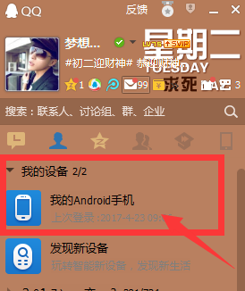 2.打开电脑上的qq,在首界面找到我的设备,并同时打开手机上的qq。
