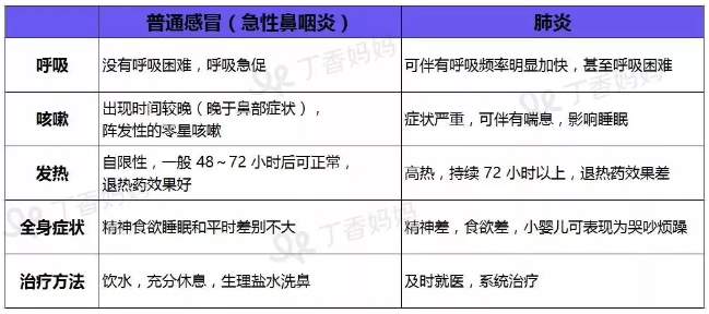 肺炎最常见的症状包括咳嗽、发热和呼吸困难,小婴儿可能会有喂养困难或烦躁不安等表现。看到这里,许多爸爸妈妈就会有疑惑,肺炎的这些症状好像和普通感冒差不多,怎么辨别呢?