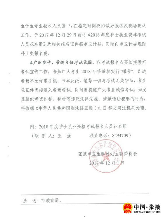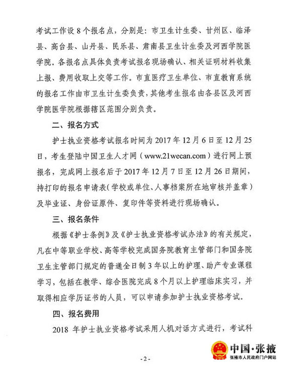 甘肃张掖市2018年度护士执业资格考试报名公告现已公布,相信有很多网友对此比较感兴趣,为此,医学教育网的编辑为大家搜集整理了相关的信息,供大家参考,希望可以帮助到大家。