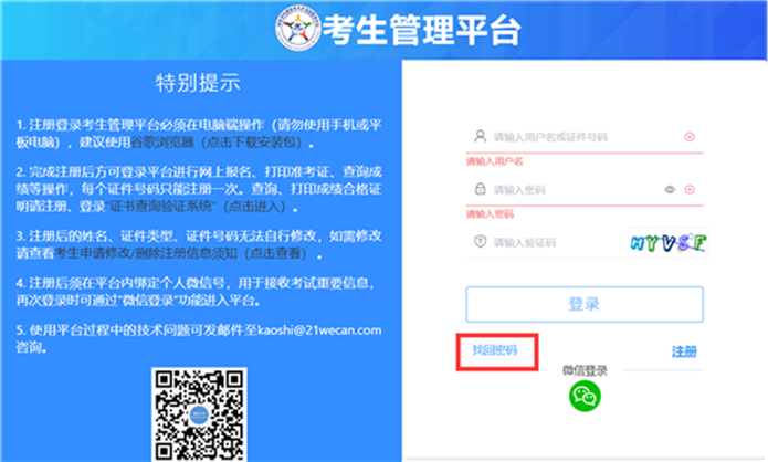 (3)注册成功后,考生应牢记用户名、密码和密码找回问题、答案,它们是找回密码操作的唯一途径。