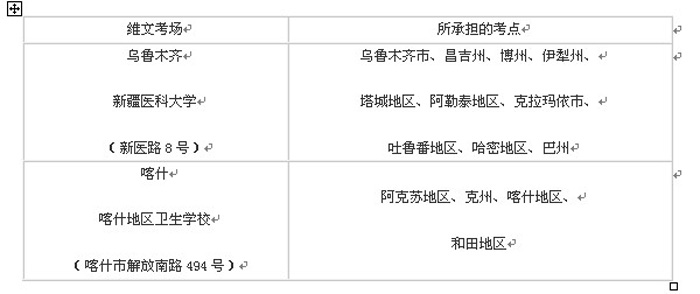 1、全区设乌鲁木齐、喀什两个维吾尔语种考场,具体如下: