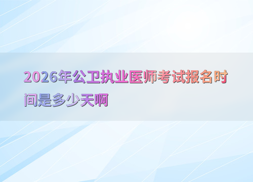 2026年公卫执业医师考试报名预计在1月至2月进行,整体周期约15天左右。