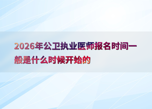2026年公卫执业医师考试报名预计在1月至2月进行,参考近年安排,如2025年为2月8日至2月21日,2024年为1月22日至2月4日。
