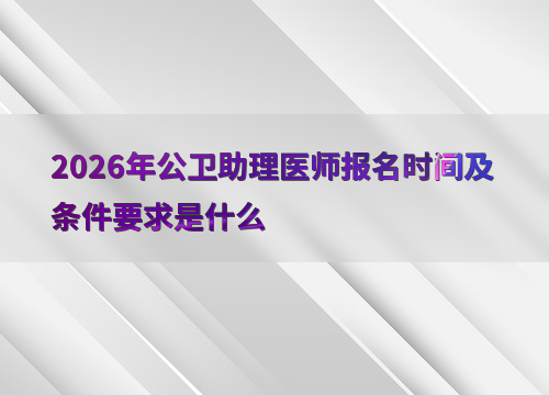 2026年公卫助理医师考试报名时间为1月29日10时至2月11日24时,网上报名结束后,现场审核时间为2月27日至3月12日。