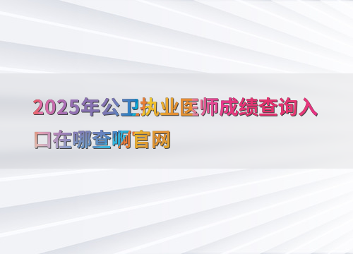 2025年公卫执业医师综合考试成绩预计在9月公布,考生可通过国家医学考试网(http://www.nmec.org.cn/)首页“成绩查询入口”进入系统,输入准考证号、证件编号和图片识别码即可查询。